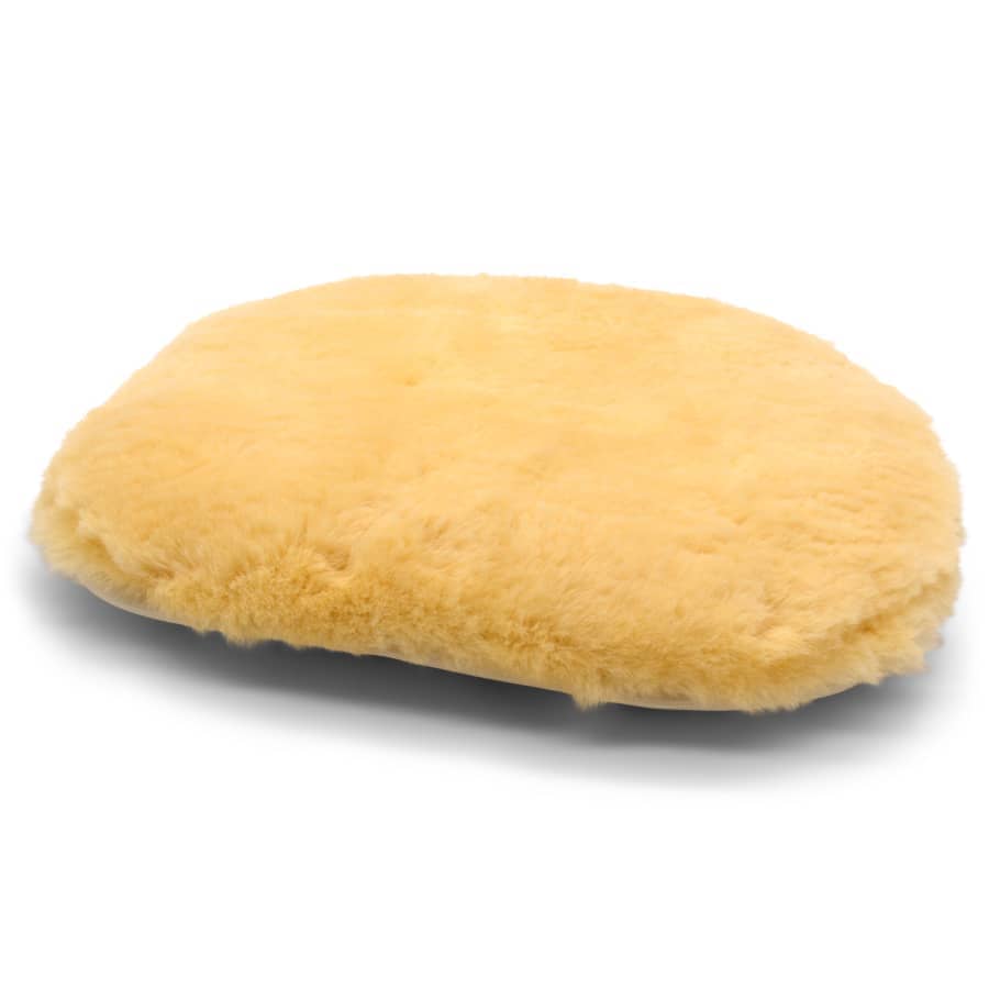 Dit schapenvacht kussen heeft een kleine pasvorm met een halfronde voorkant. Hierdoor past hij gemakkelijk op iedere zitting. Het kussentje is aan de bovenkant bekleed met medicinaal schapenvacht, wat door de kortgeschoren wol, een drukverlagende werking heeft. Hierdoor verminderen of verdijnen pijnklachten die veroorzaakt worden door langdurig zitten in bijvoorbeeld een rolstoel of scootmobiel.