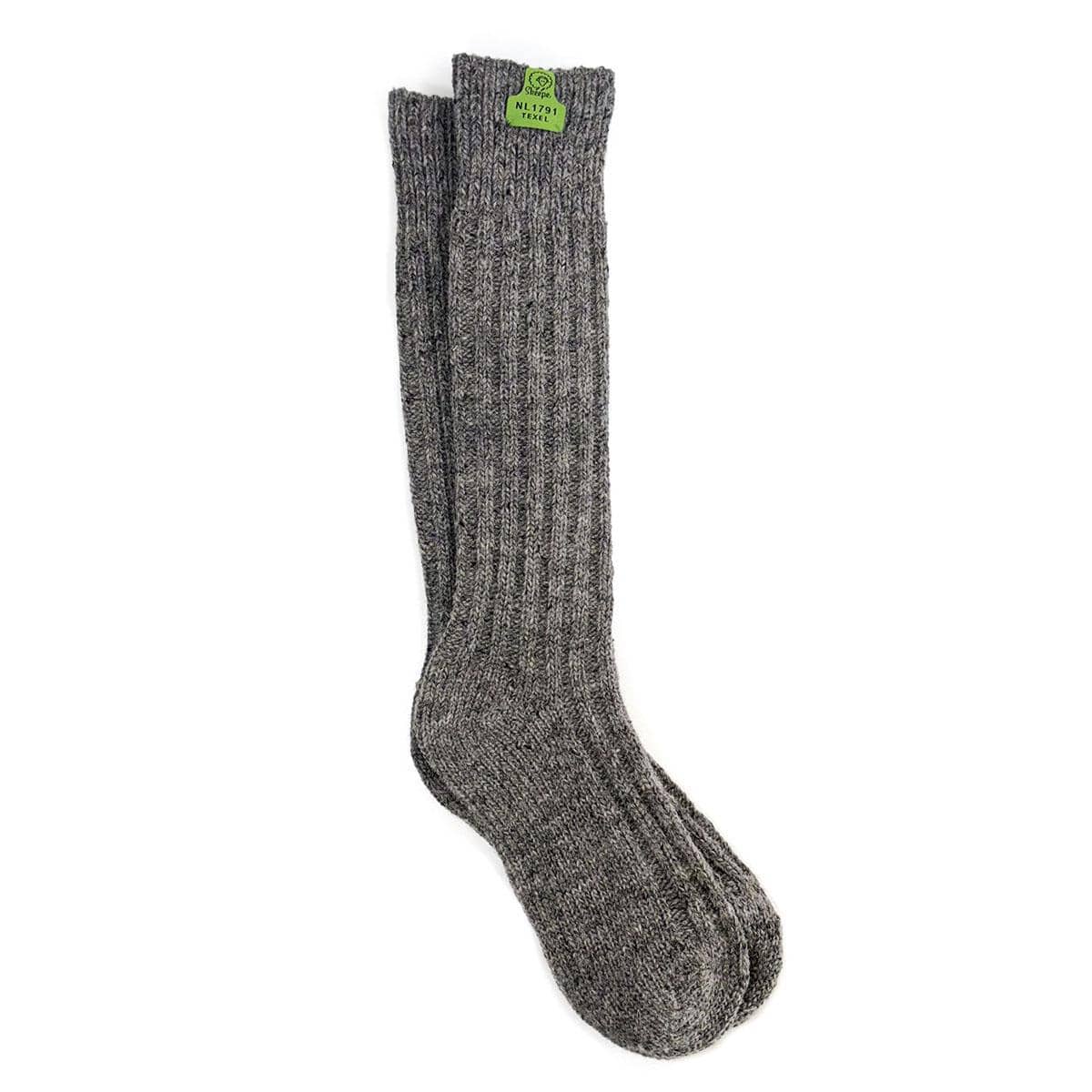 Texelse grijze wollen sokken van Skéépe - Extra lange, wollen kniekousen voor dames