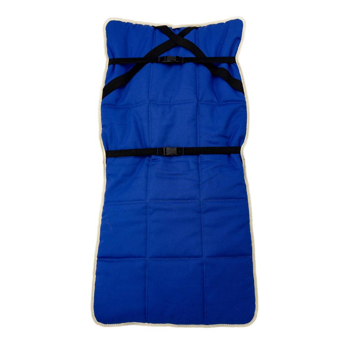 De inleg is op de achterkant voorzien van 4 banden, waarvan twee vast te maken zijn d.m.v. een klikgesp. Op deze manier blijft het kussen goed zitten en is het universeel te gebruiken voor elke rolstoel.