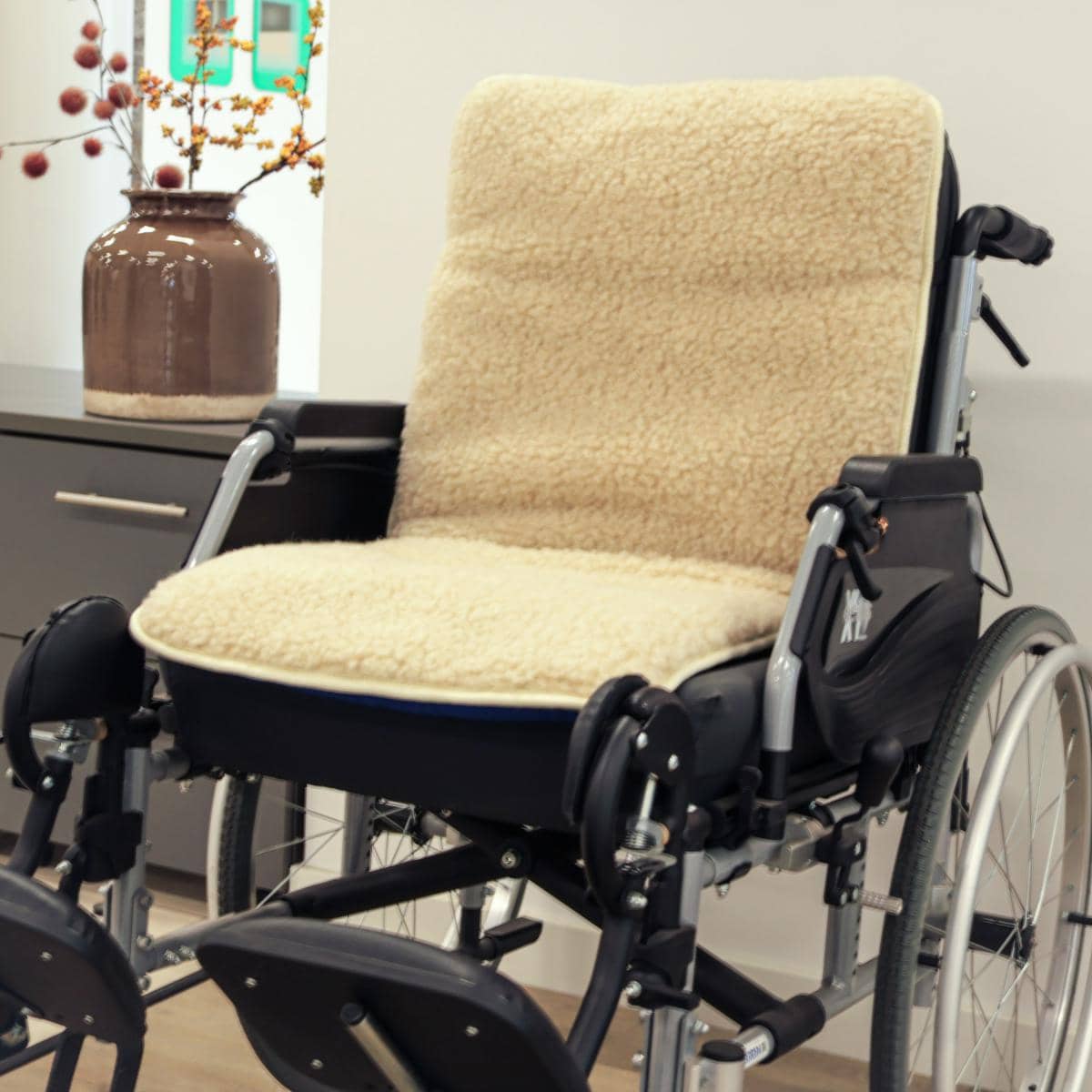 Dit inlegkussen voor in rolstoel of scootmobiel is gemaakt van 100% natuurlijke Texelse lamswol. Deze inleg bestaat uit een zitkussen en rugkussen die aan elkaar vast zitten. Hierdoor is het zitten in een rolstoel of scootmobiel veel comfortabeler voor het zitvlak, stuitje en de rug: je ervaart minder pijn bij langdurig zitten.