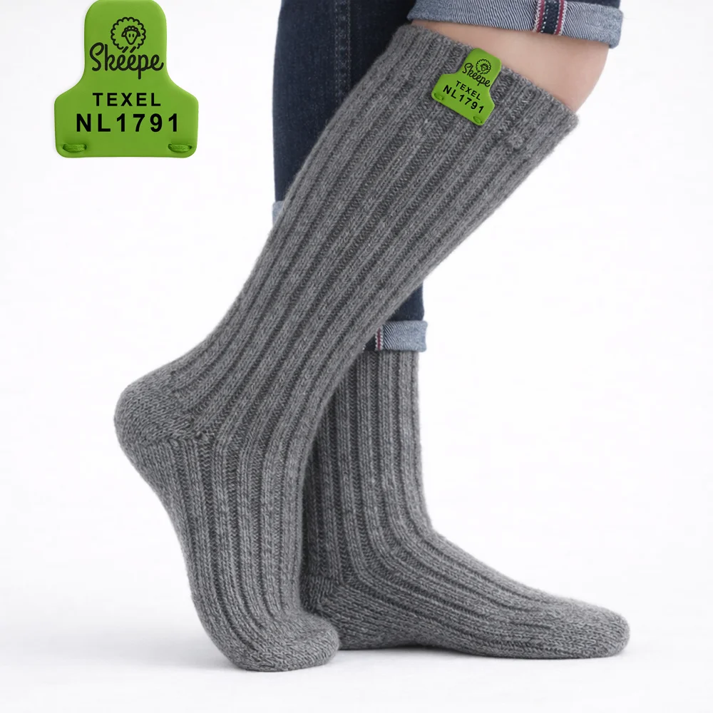 Texelse grijze wollen sokken van Skéépe - Extra lange, wollen kniekousen voor dames